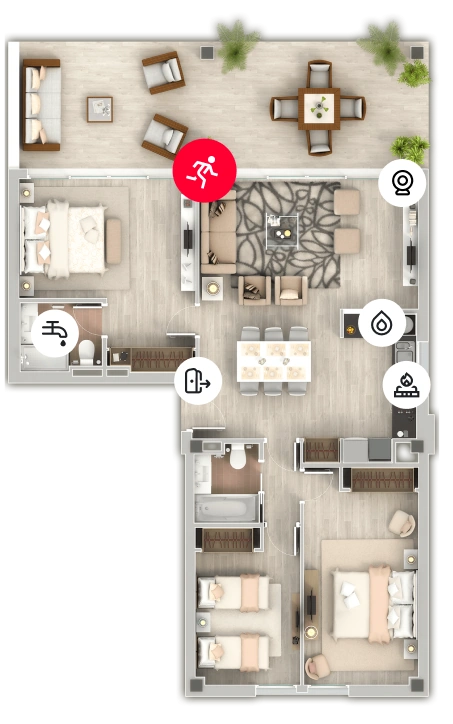 При малейшей вероятности пожара или кражи срабатывают датчики движения, камеры фиксируют все происходящее и отсылают фотографии и видеозаписи на пункт постоянного мониторинга. Специалист мгновенно анализирует ситуацию и по необходимости вызывает службу пожарной охраны или ЧОП. Гольфстрим гарантирует своевременный вызов служб, иначе вернет деньги за испорченное имущество.